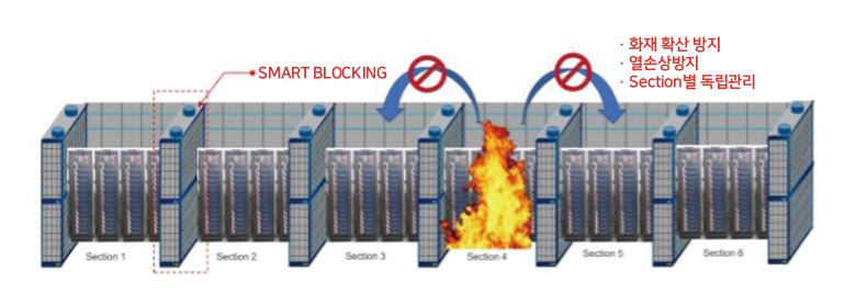 - 배터리 자체 모듈 및 셀의 화재 안전 시스템