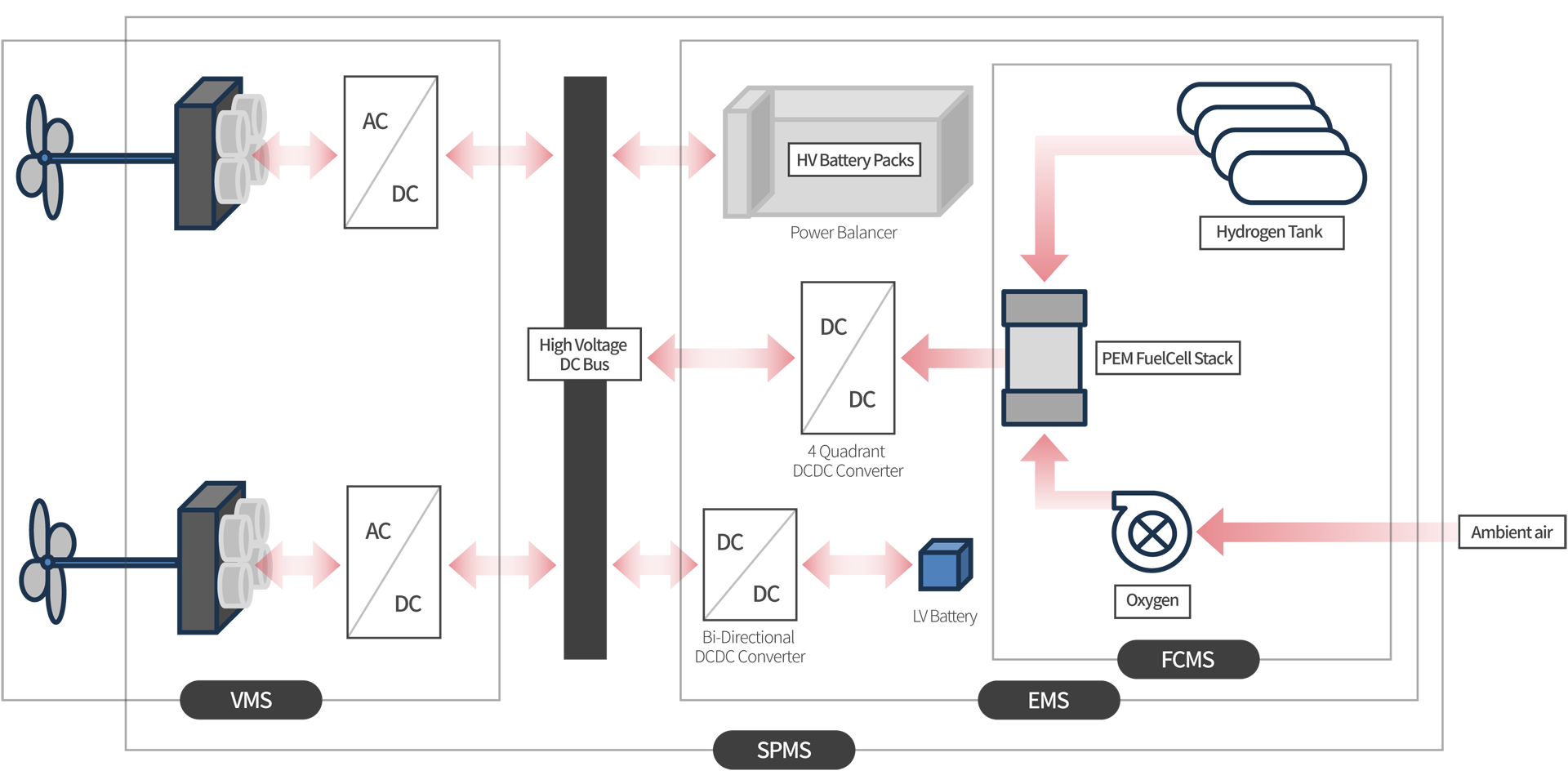 Legend : SPMS(System and Power Management System) / VMS(Vessel Management System) / EMS(Energy Management System) / FCM(FuelCell Management System)
